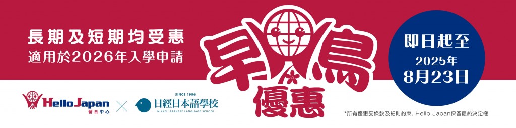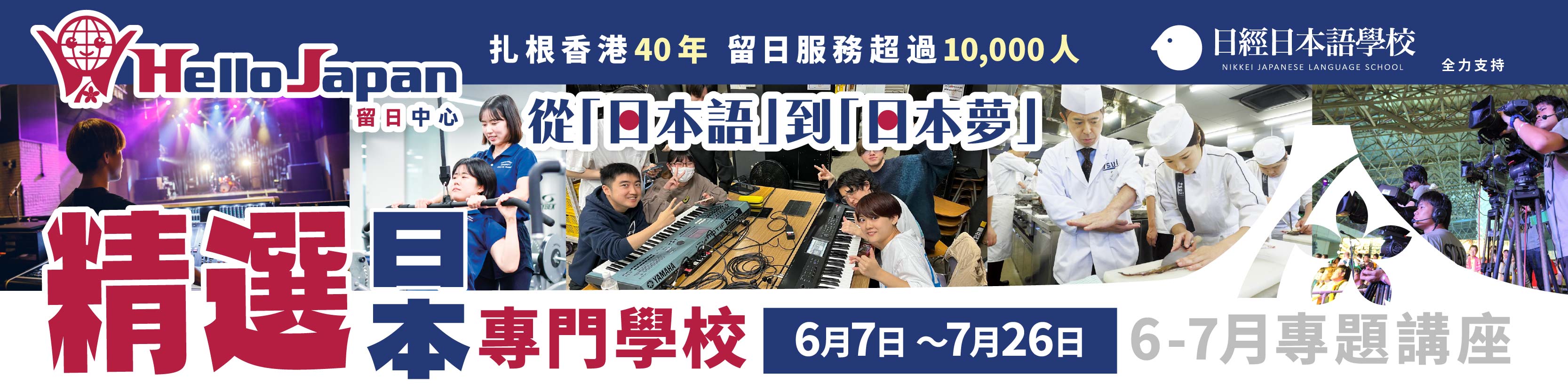 近年港人赴日目標漸趨多元化,年齡層亦相對大大擴闊 — 以往大部份人大多為「學日文」留學,到現在越來越多為「取得日本就職資格」或「將來日本生活」等更遠目標而留學,「學生」、「在職人士」、「退休人士」、「家庭」各有不同需求。Hello Japan 留日中心將於 2025年8月9日 (六) 聯同日經留日中心舉辦年度盛事「第23回大型日本留學展」 ,嚴選出日本全國多間精選優質日語學校、專業學校、就職機構及住宿房屋機構,希望為不同「赴日目標」及「年齡」人士,提供不同範疇的第一手最新情報。不論計劃將來到日本留學、工作還是生活,是次大型留學展能為你「一站式」提供所有必須資訊! 學校及機構會於場內提供一對一諮詢,現場更並設中日翻譯員即時翻譯!同場展廳亦設有赴日專題講座,歡迎任何年齡人士參與! *必須事前網上登記, 不設 Walk-in!