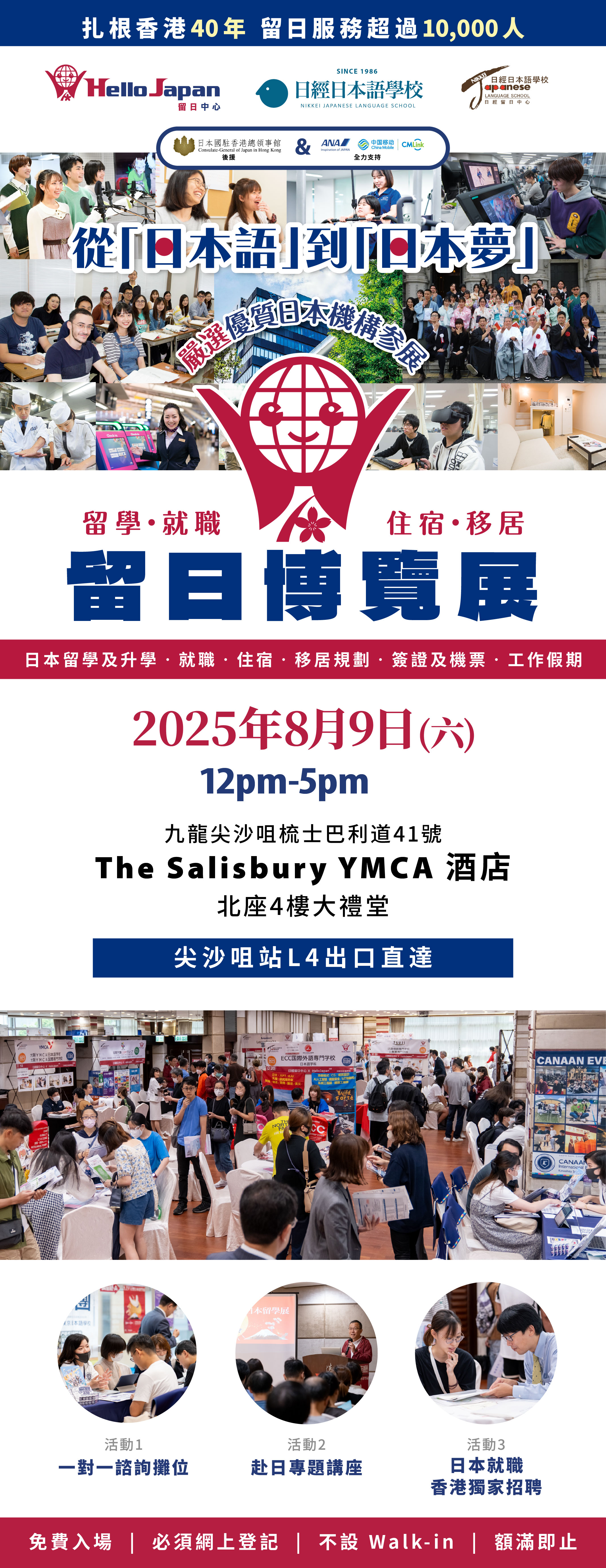 2025-05-20全港最全面「All-in-1」赴日規劃展覽,滿足不同年齡及赴日目標人士!