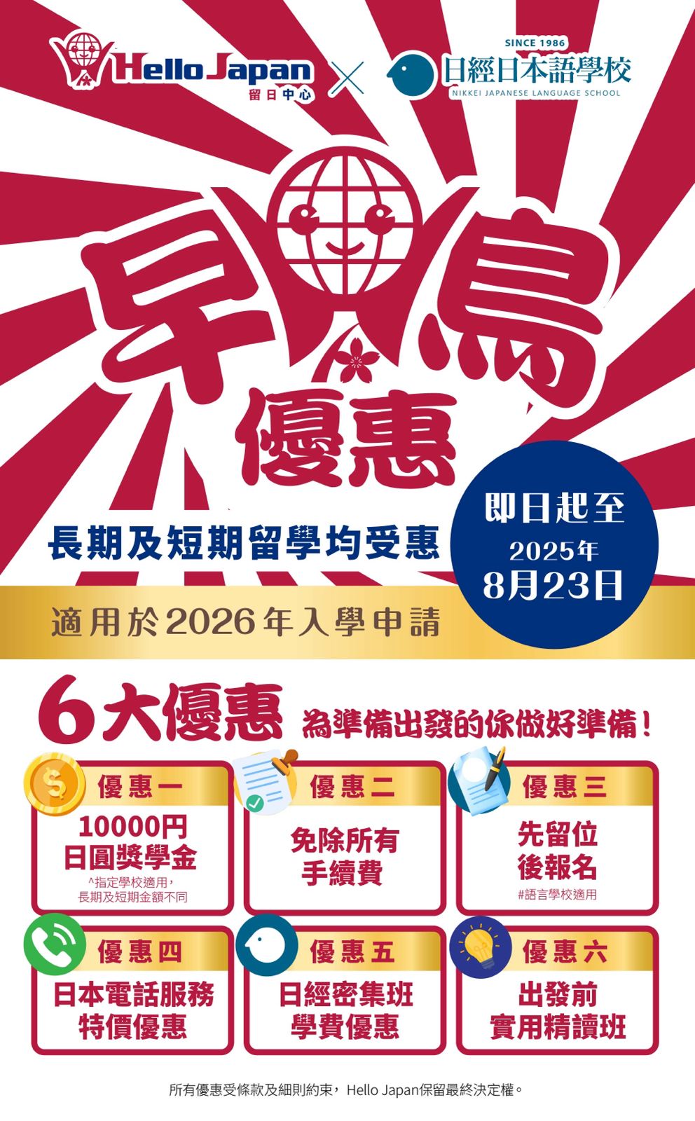 ▶︎ 2026年度日本留學 — 6大早鳥優惠!